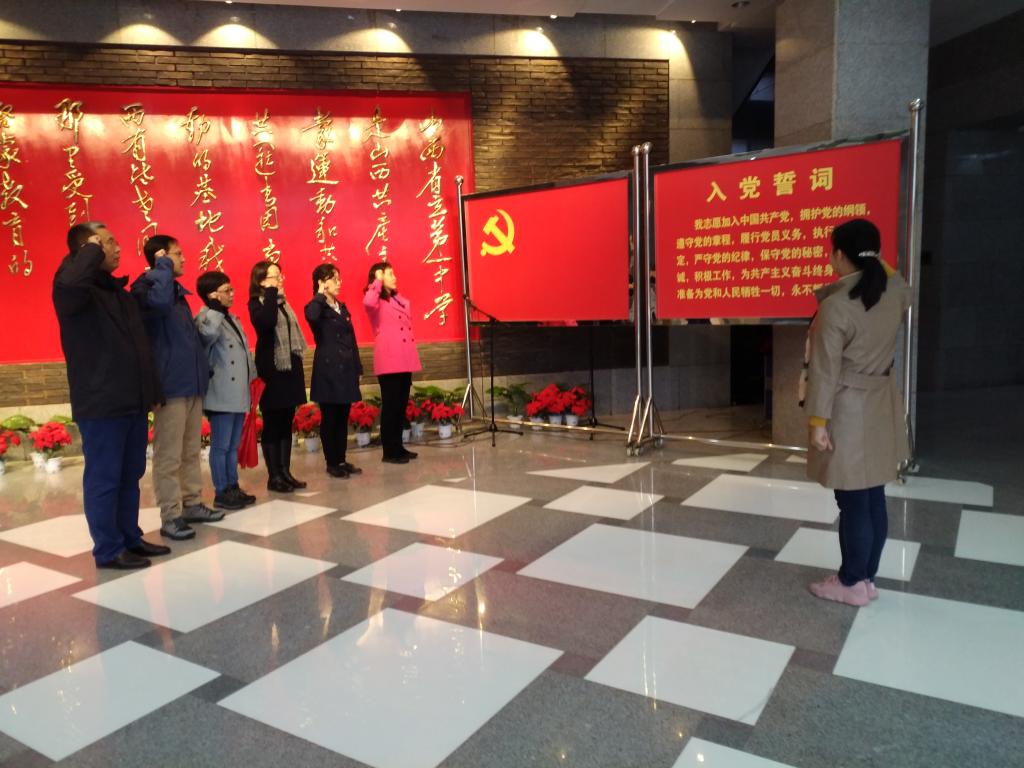 在彭真纪念馆大厅内,面对鲜红的党旗,支部委员李静同志领誓,全体党员举起右拳庄严宣誓,以铿锵誓言表达对党的无限热爱与忠诚。