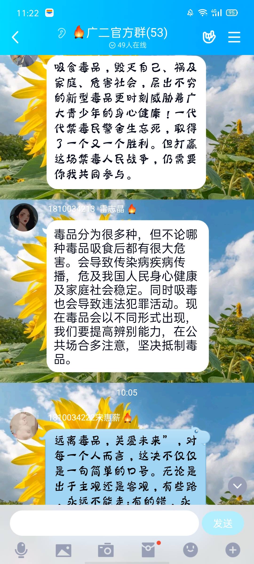 学院以党支部、团支部为单位,组织召开以“6.26国际禁毒日”为主题的学习研讨活动,根据在直播课中所讲述的禁毒知识,围绕“什么是毒品”“吸毒为什么会成瘾”“吸毒有哪些危害”等方面进行交流与分享,并且对“怎样正确对待吸毒者”“青少年应如何自我防范和保护”等方面进行深入讨论。通过学习讨论,更好地认识到了禁毒的重要意义,内化了学习成果,对禁毒工作的了解进一步加深。