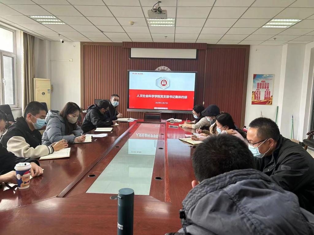 11月27日下午,为解决巡察整改中发现的问题,进一步规范党员发展流程,保证党员档案填写和支部会议记录规范等事项,人文社会科学学院党委在院楼615会议室召开了党支部书记集体约谈会。会议由学院党委书记孙俊伟主持,学院副书记王晓东和各党支部书记、副书记参加了会议。